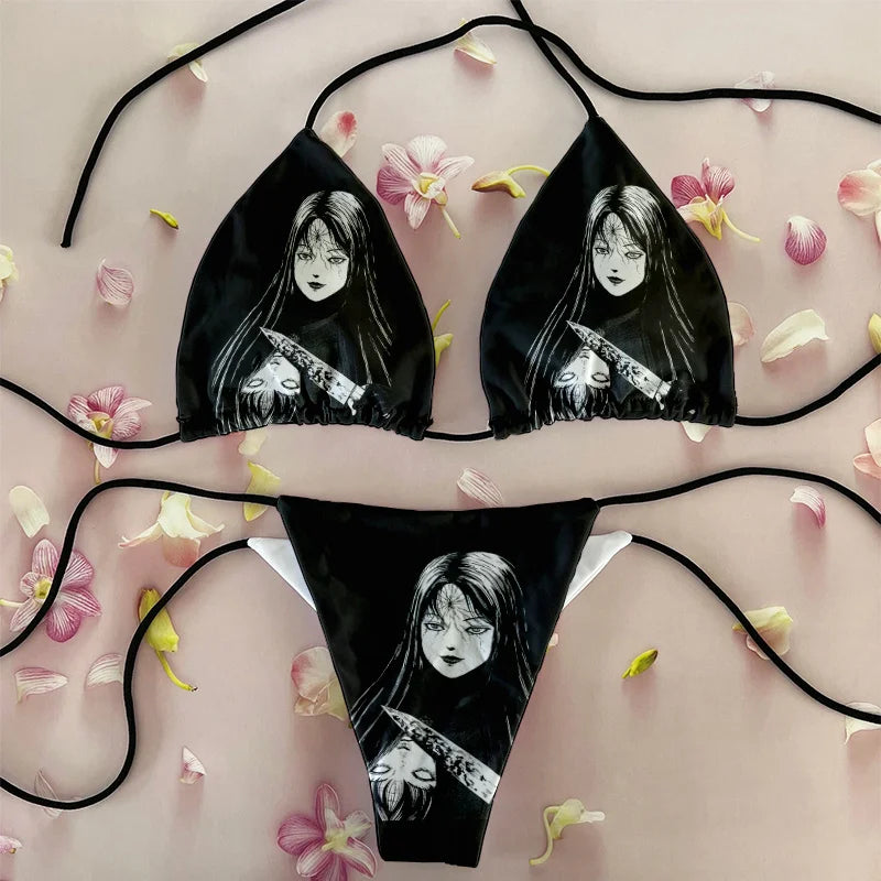 🖤 Biquíni Tomie Junji Ito Gótico – Mergulhe no Estilo Sombrio e Chic! 🖤