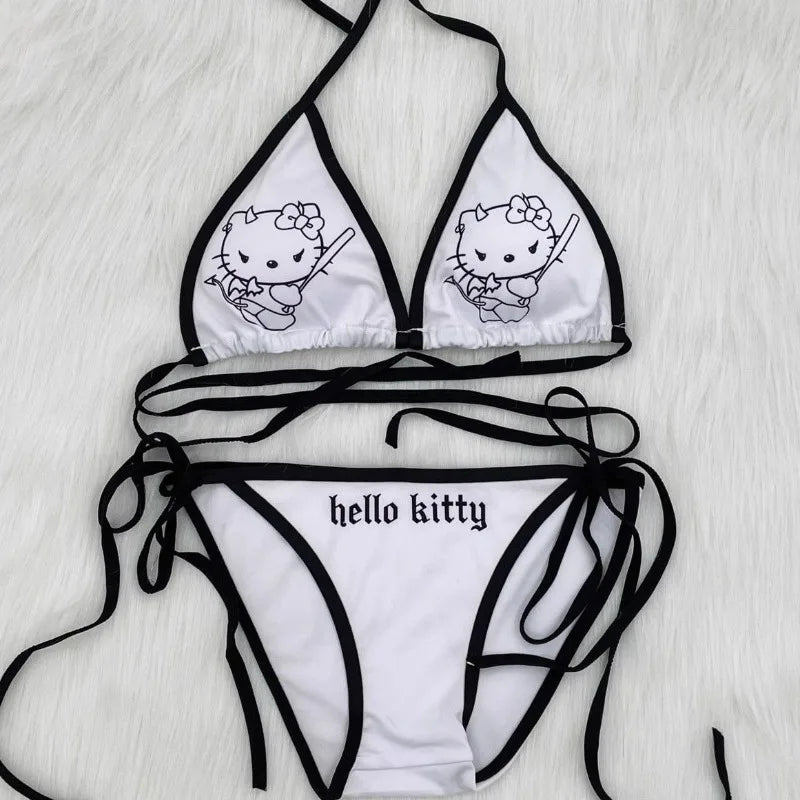BIQUINÍ DEVIL KITTY KAWAII GOTH, Y2K