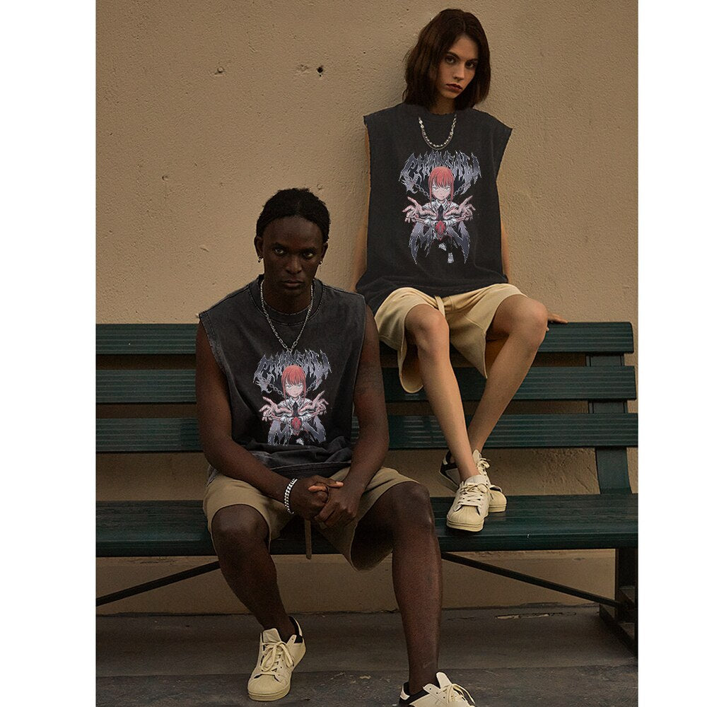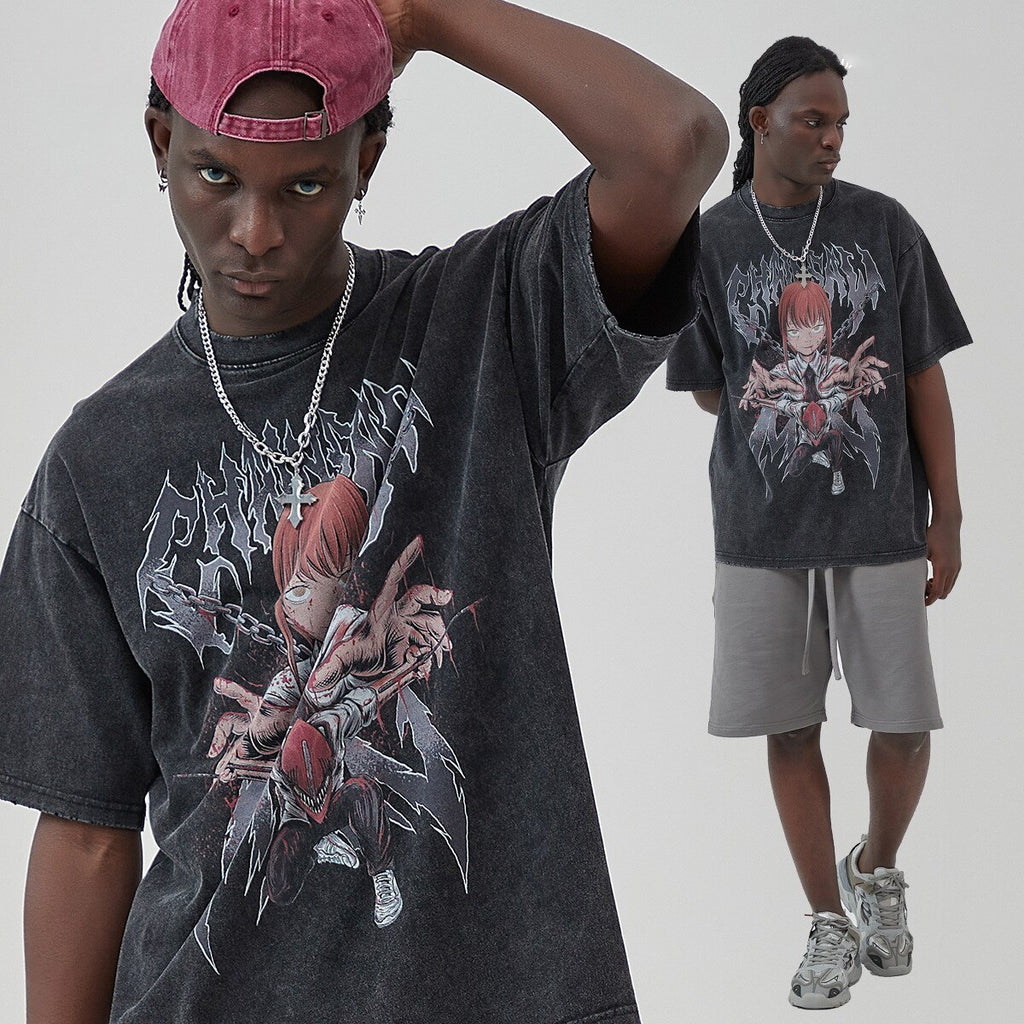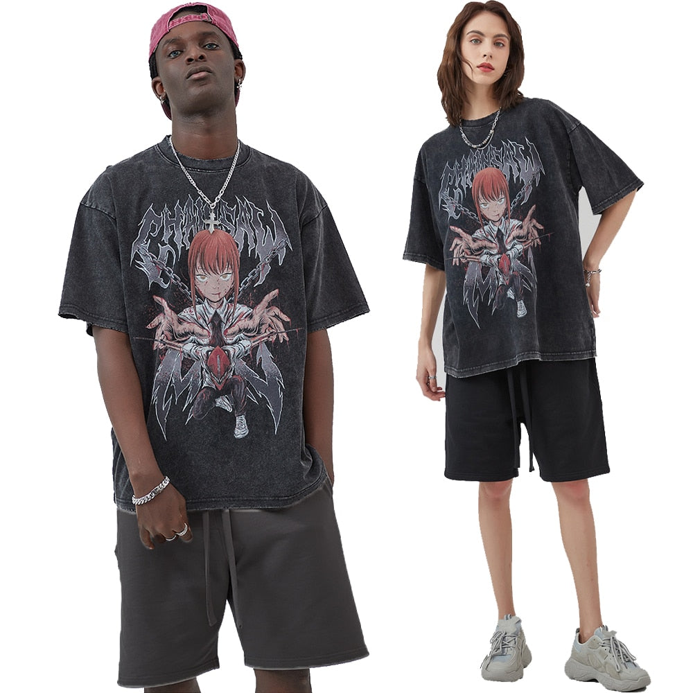 Eleve seu estilo geek com a Camisa Makima, Vintage, e mostre sua paixão por Chainsaw Man de forma estilosa e confortável! 🌟🖤