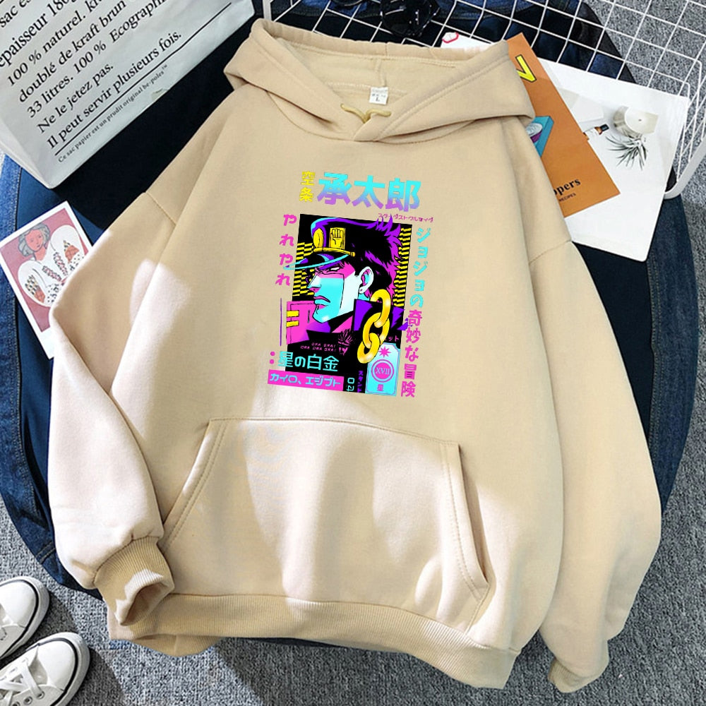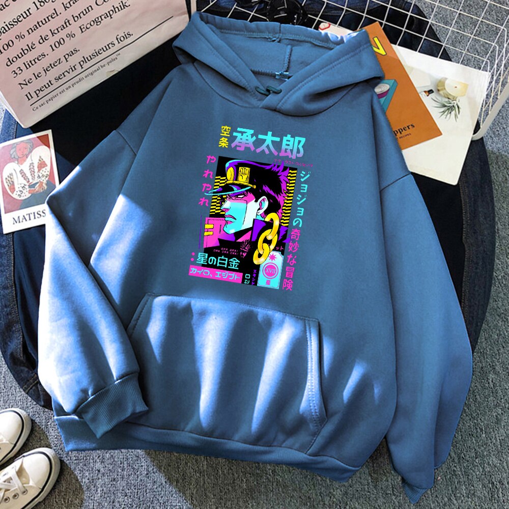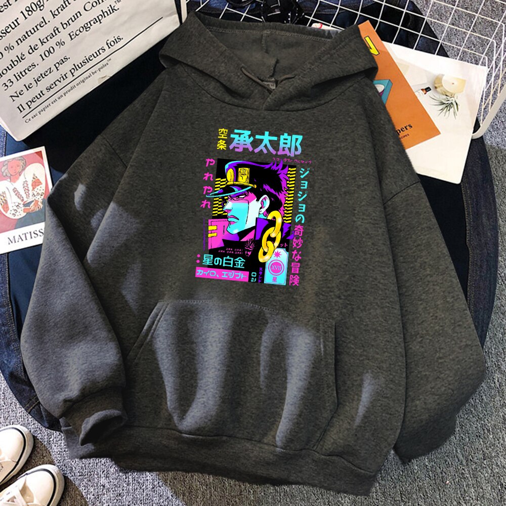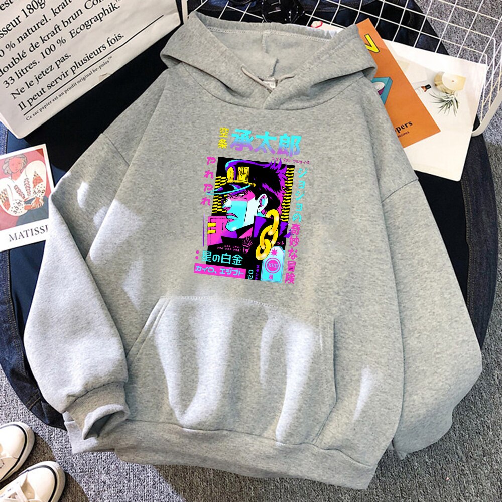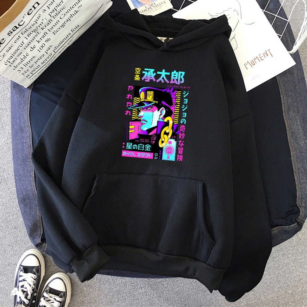 • Estilo Iconic do Anime: Este moletom traz o estilo inconfundível de Jotaro Kujo do anime JoJo's Bizarre Adventure. Perfeito para os fãs que querem incorporar o poder e a atitude deste personagem lendário! 🌀👕