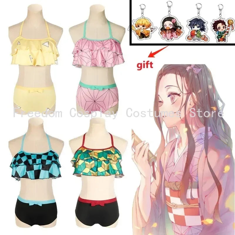Biquíni Infantil Waves, Demon Slayer + Chaveiro (Brinde)
