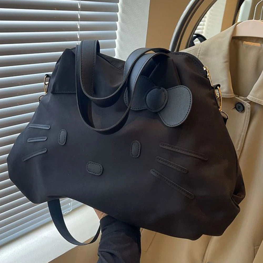 Além de seu design super fofo exclusivo para quem é fã da gatinha mais charmosa de todas, a bolsa é ideal para viagens pois é prática, bem espaçosa, funcional. Seu material Nylon é impermeável, resistente e fácil de lavar.