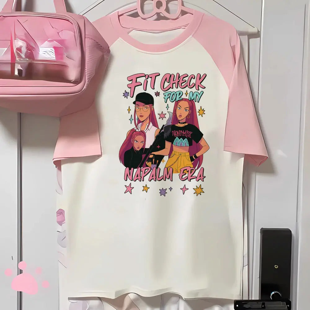 Entre no universo das caçadoras mais estilosas com a Camiseta Feminina Huntrax Demons Hunter, inspirada na cultura Kpop e no visual Harajuku Y2K!