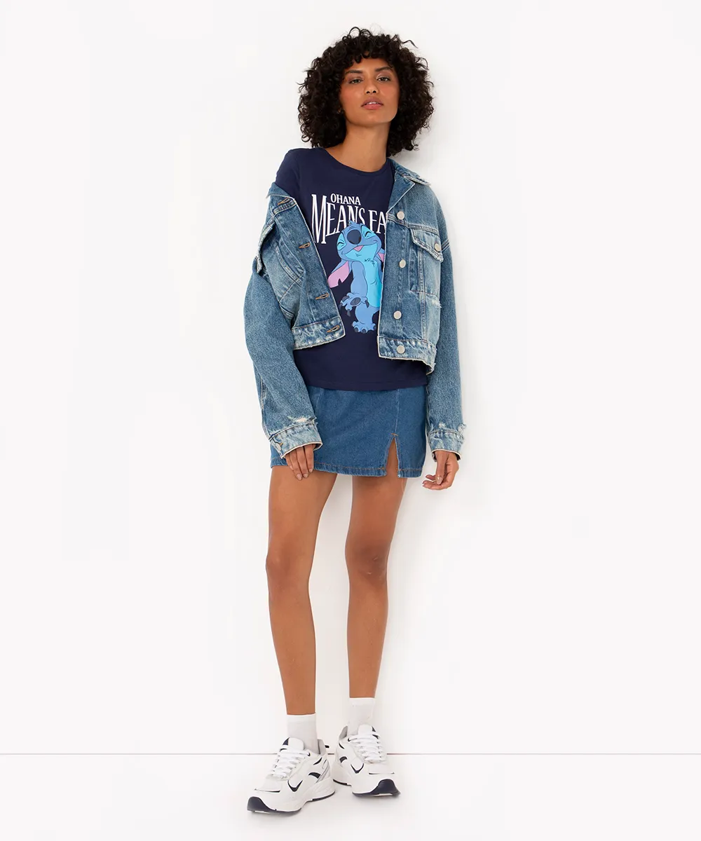 Na compra de produtos selecionados, você garante GRÁTIS essa camiseta linda do Stitch com a frase mais marcante do filme. E tem mais: ela vem acompanhada de um chaveiro surpresa escolhido de acordo com o personagem que você selecionou no carrinho. Um combo fofo e cheio de carinho pra quem ama Disney!