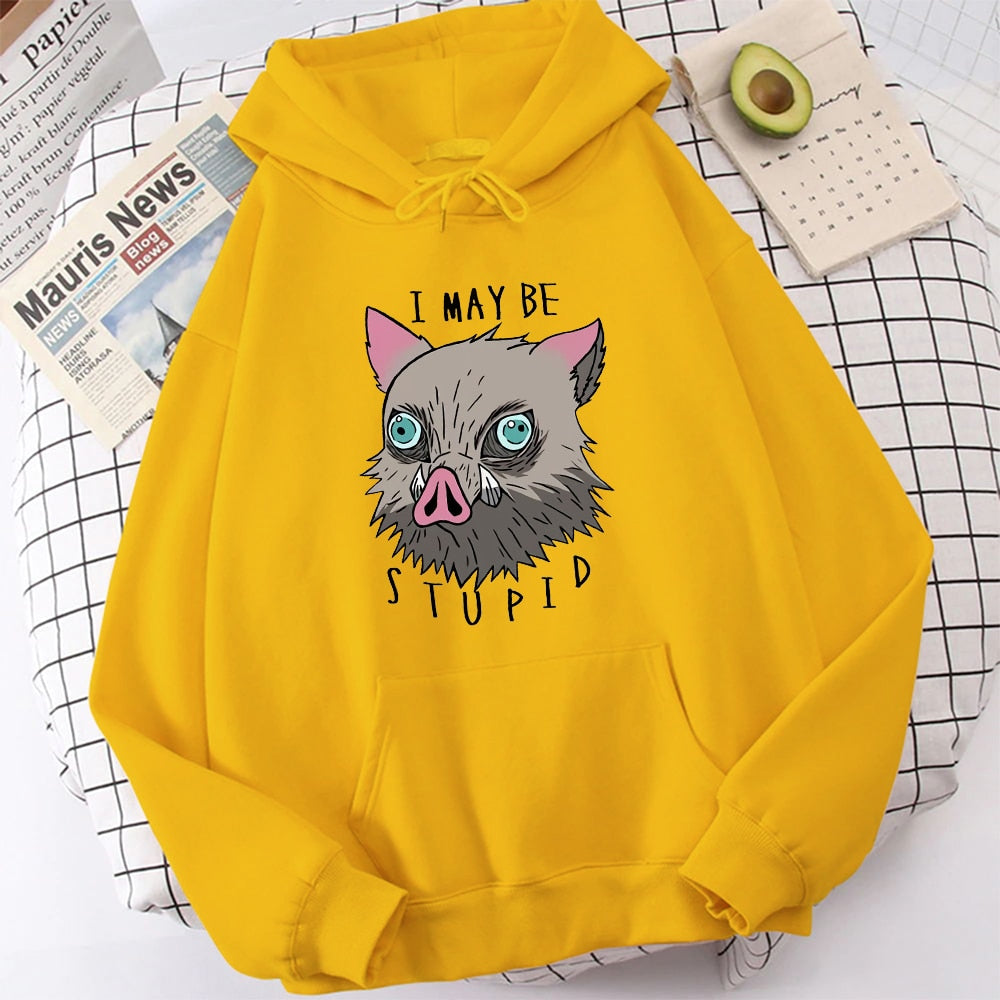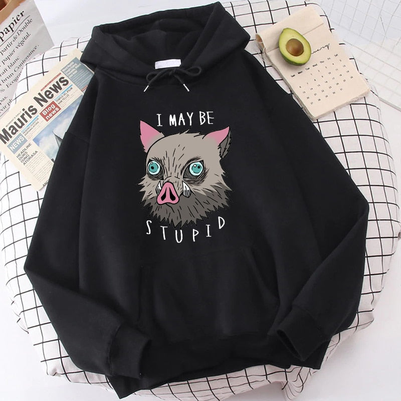 - Estampa única e vibrante com a frase icônica “I May Be Stupid” de Inosuke Hashibira, capturando seu espírito indomável e personalidade única.