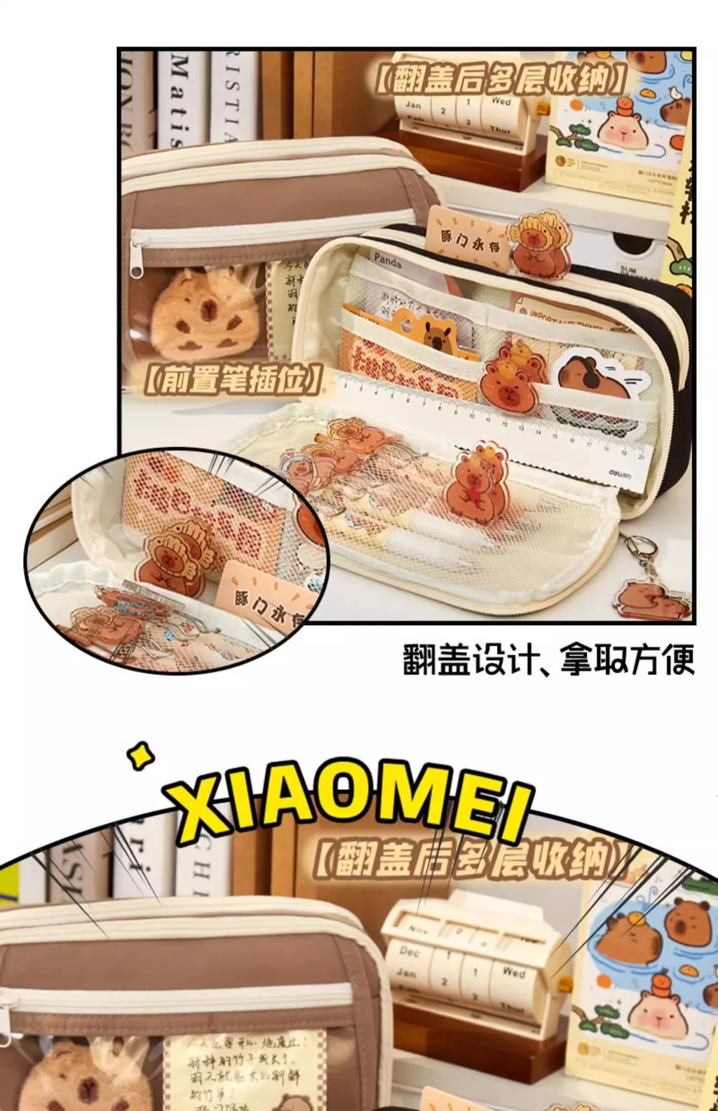 🎯 Fofo, funcional e cheio de estilo! Este estojo de capivara é perfeito para organizar seu material escolar ou de escritório com muita praticidade. Além de ser espaçoso, ele vem com brindes incríveis para deixar tudo ainda mais especial!