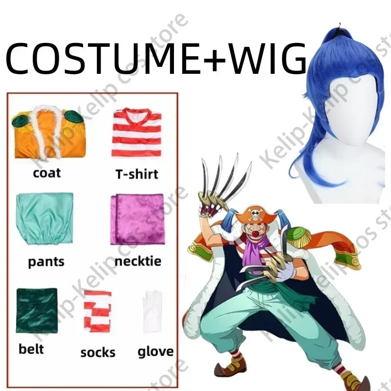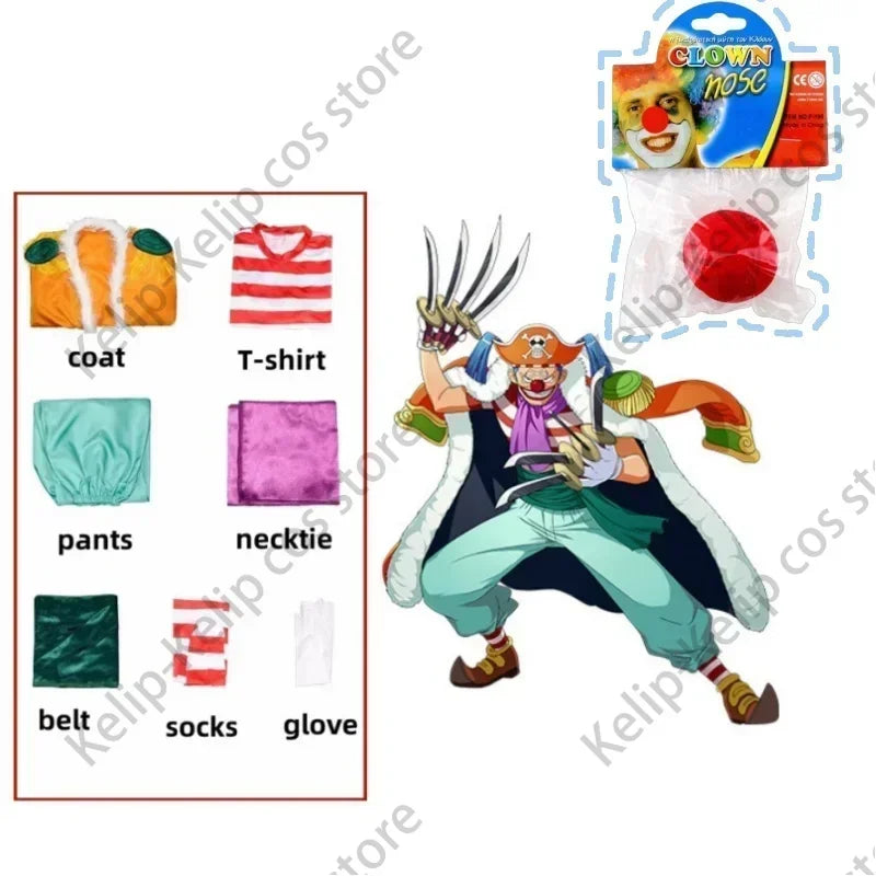 Chegou a hora de brilhar como o lendário capitão dos Piratas Buggy! ✨ Se você é fã de One Piece, essa fantasia vai transformar você no temido e carismático Buggy, o Palhaço Estrela! Composta por peças detalhadas e de alta qualidade, esta fantasia é perfeita para eventos, cosplay, festas temáticas e até mesmo para causar impacto no Halloween! 🎃