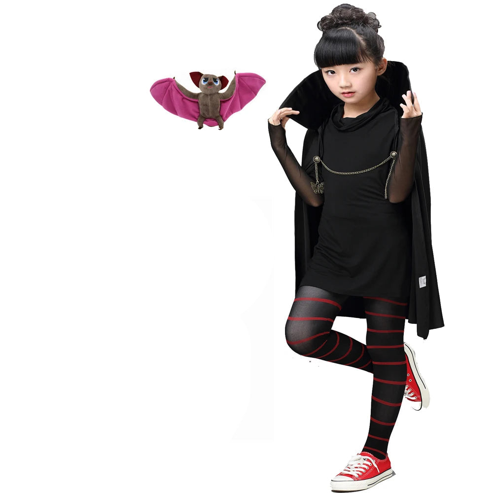 Transforme sua pequena em uma vampirinha cheia de atitude com essa fantasia inspirada na Mavis de Hotel Transilvânia! Ideal para festas de Halloween, Carnaval, cosplay ou momentos mágicos de brincadeira. A fantasia capta o estilo marcante da personagem com vestido preto, capa, meias listradas e acessórios que fazem toda a diferença. Disponível também a peruca (opcional).