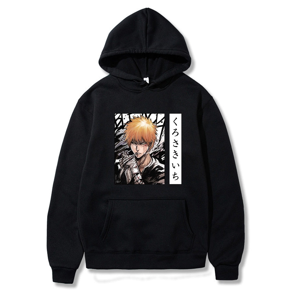 Estilo Impactante do Anime: Este moletom é uma homenagem ao poderoso Ichigo Kurosaki do anime Bleach, capturando sua determinação e força lendárias. Ideal para os fãs que querem incorporar o espírito de luta do personagem! 🌟👕