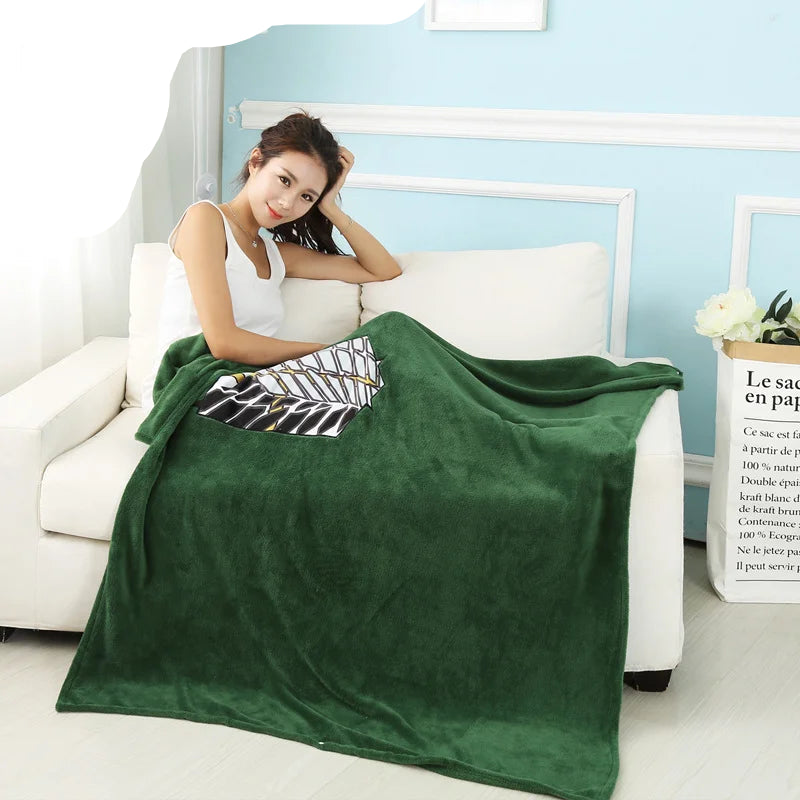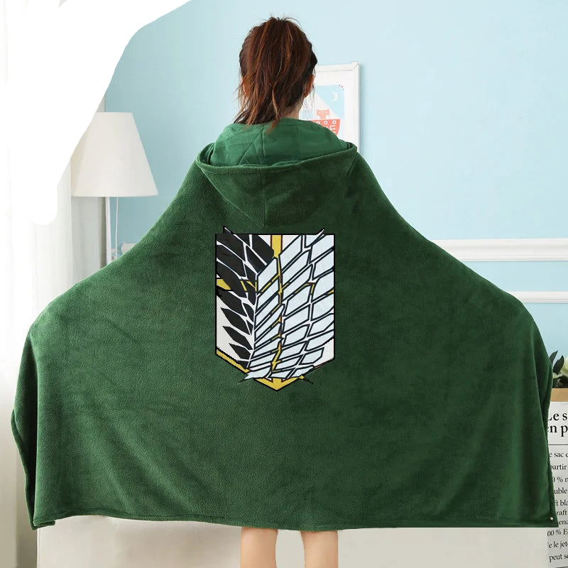A Manta Capa da Tropa é o acessório 2 em 1 que mistura o visual icônico do anime Attack on Titan com a praticidade e conforto de uma manta flanelada.