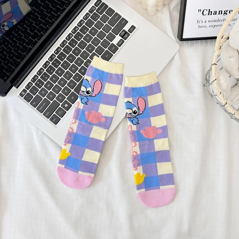 Complete o look com um toque fofo e divertido nos pés! Essas meias temáticas inspiradas na Hello Kitty, Stitch e personagens de Hora de Aventura são o mimo perfeito para fãs de todas as idades. Com design encantador, toque macio e ótima elasticidade, elas são ideais para o dia a dia ou como presente criativo.