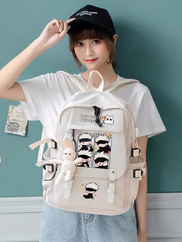 Mochila Gojo Team Chibi + Coelhinho Chaveiro Pelúcia (Brinde)
