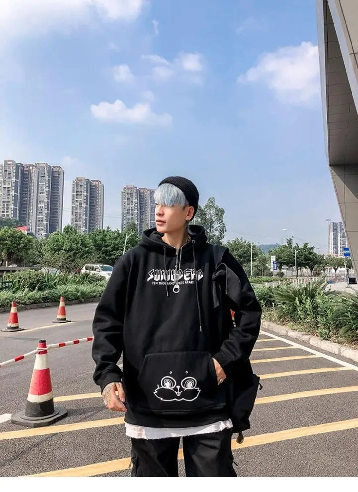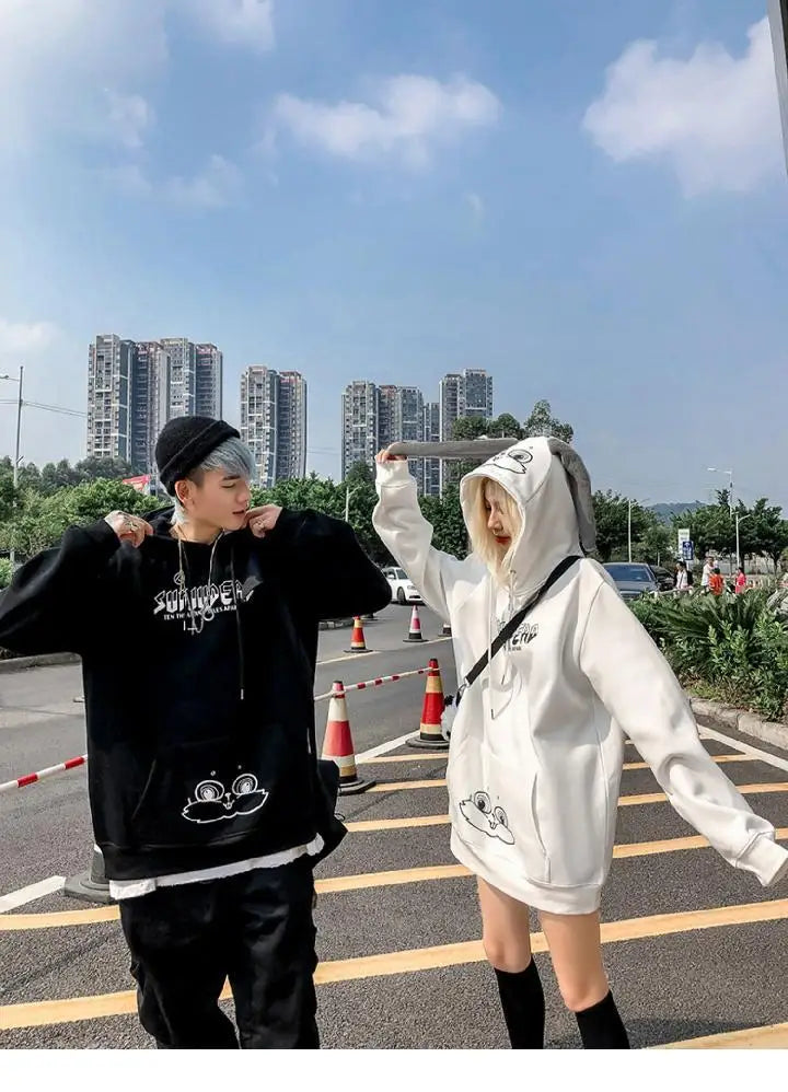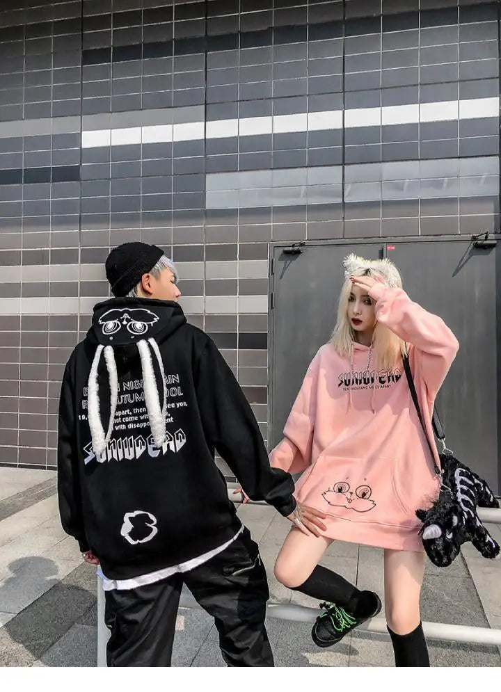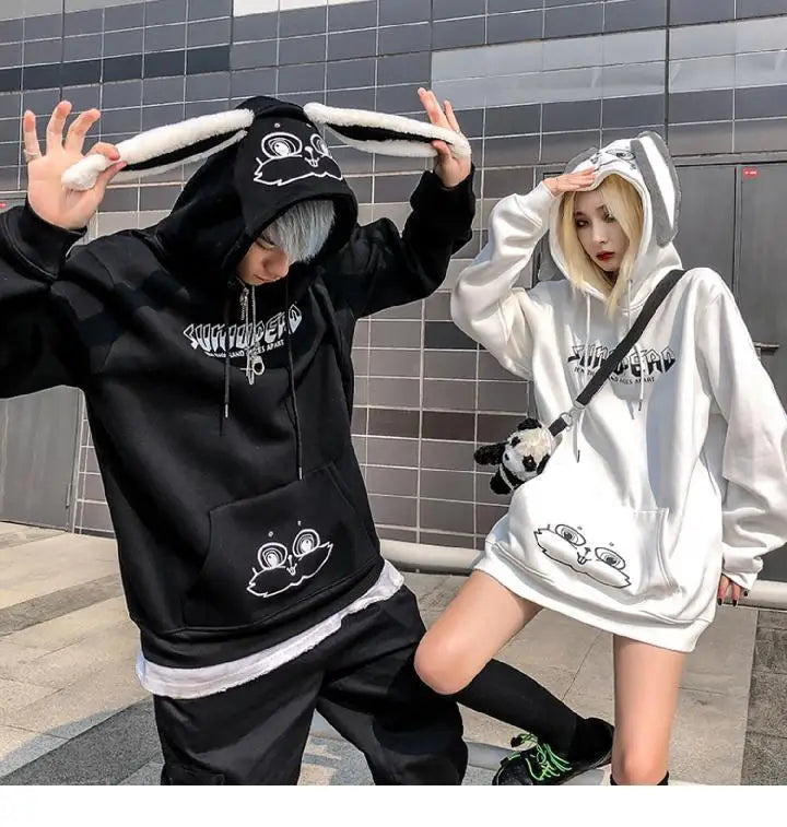 Se você ama moda streetwear com um toque fofo e misterioso, o Moletom Bunny Vision é perfeito para você! Com um design oversized e um capuz com orelhas felpudas, ele une estilo Harajuku e conforto para os dias mais frios. Seu tecido de alta qualidade é uma mistura de algodão e poliéster, garantindo maciez e durabilidade.
