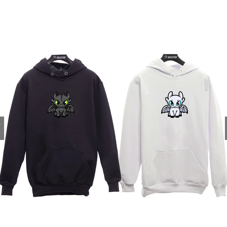 Esse kit com 2 moletons canguru é inspirado em Como Treinar o Seu Dragão, trazendo os adoráveis Banguela (Fúria da Noite) e Fúria da Luz em versões chibi bordadas com muito charme!