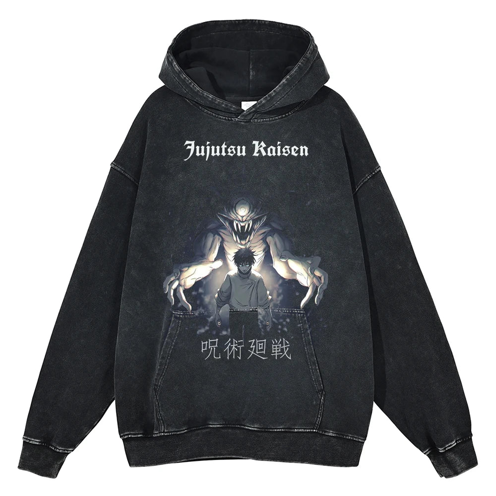 🔥 Três visuais, uma única maldição: conheça o Moletom Vintage Oversized JJK – Edição Maldição Suprema, o queridinho de quem curte visuais sombrios, urbanos e cheios de poder! Inspirado em momentos icônicos de Jujutsu Kaisen, esse moletom une conforto extremo com estampas marcantes para fãs de atitude.