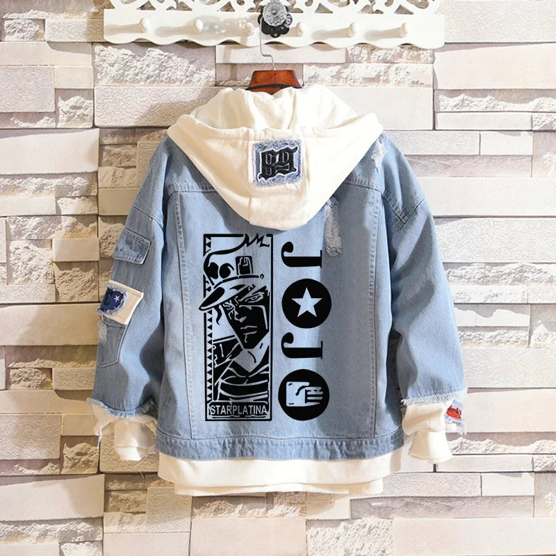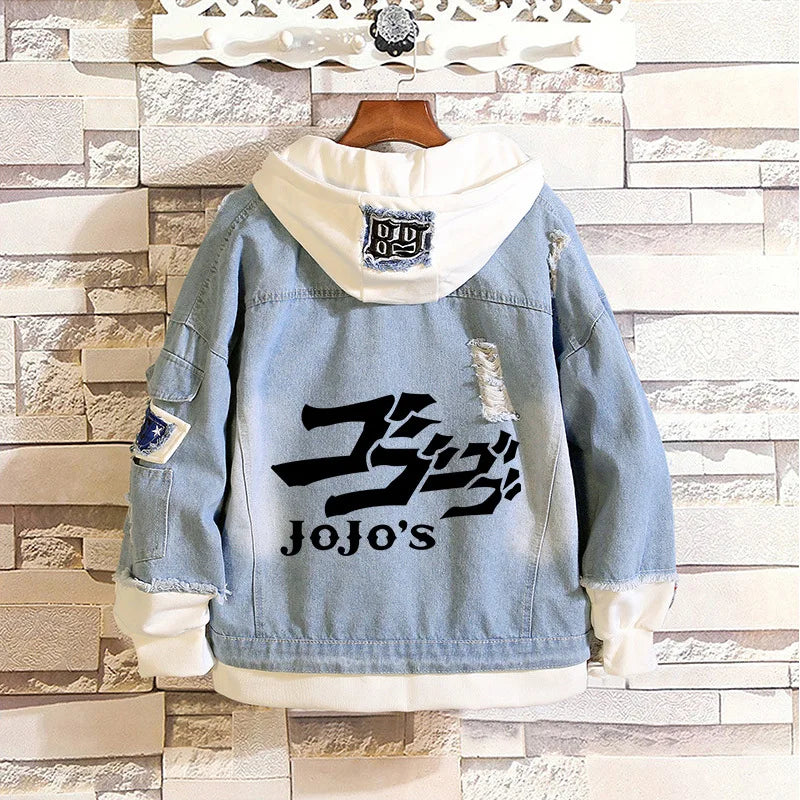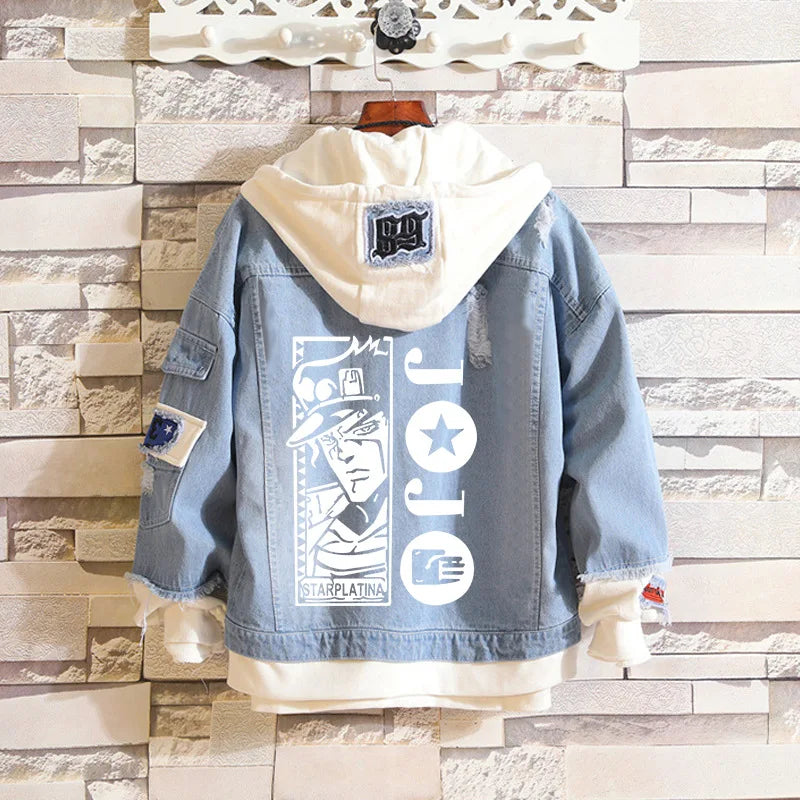 Transforme seu visual e abrace o mundo excêntrico de Jojo’s com a Jaqueta Jeans Jojo’s Bizarre Adventure! 🌟🧥