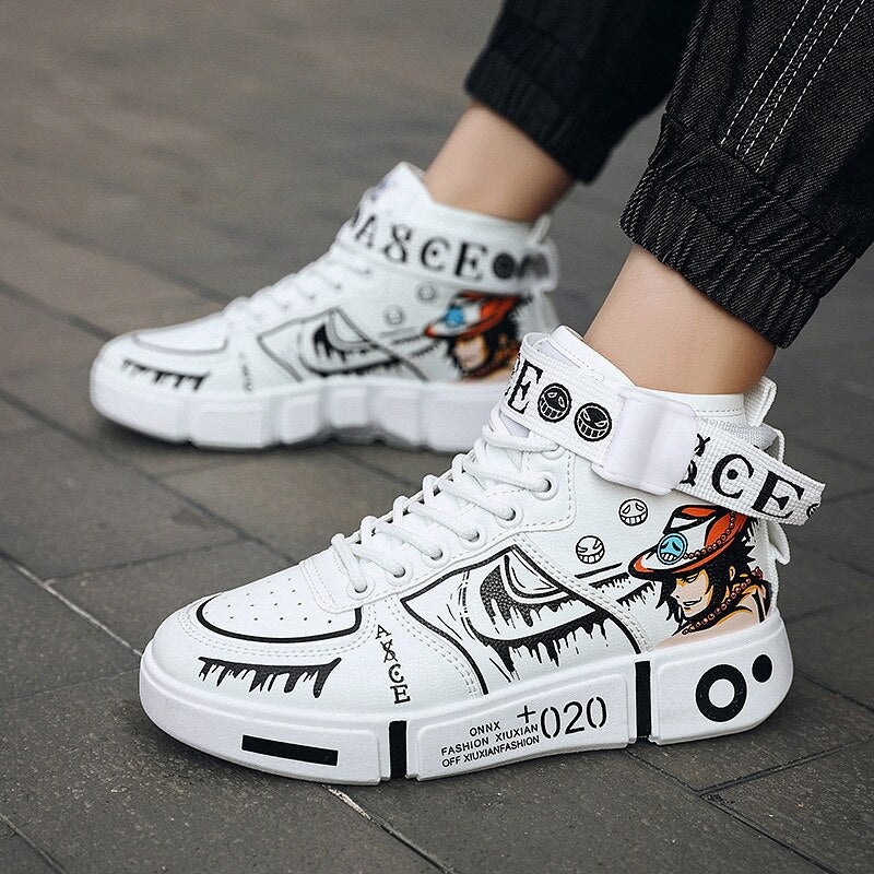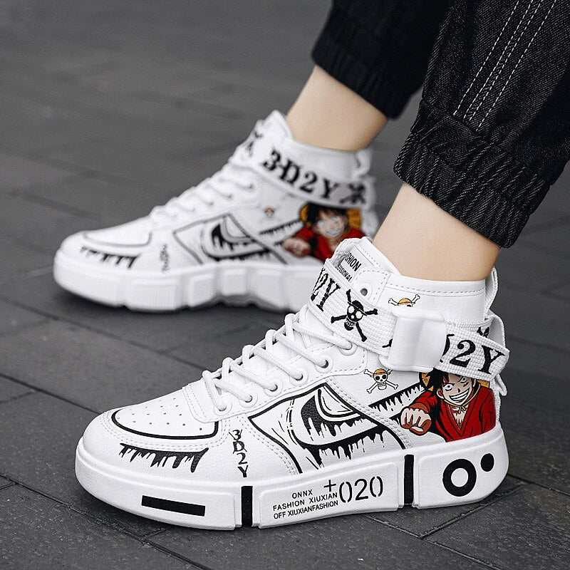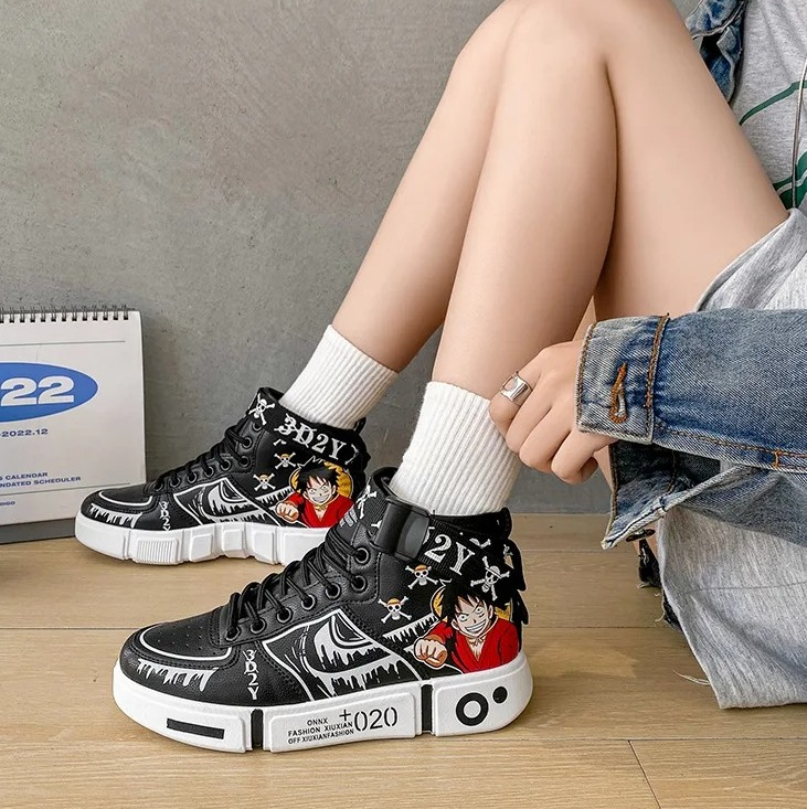 Cada par é meticulosamente confeccionado com os melhores tecidos e materiais, garantindo não só uma aparência incrível, mas também conforto e durabilidade excepcionais. Com solado antiderrapante e palmilha acolchoada, esses tênis são perfeitos para enfrentar qualquer aventura, seja na Grand Line ou nas ruas da sua cidade.
