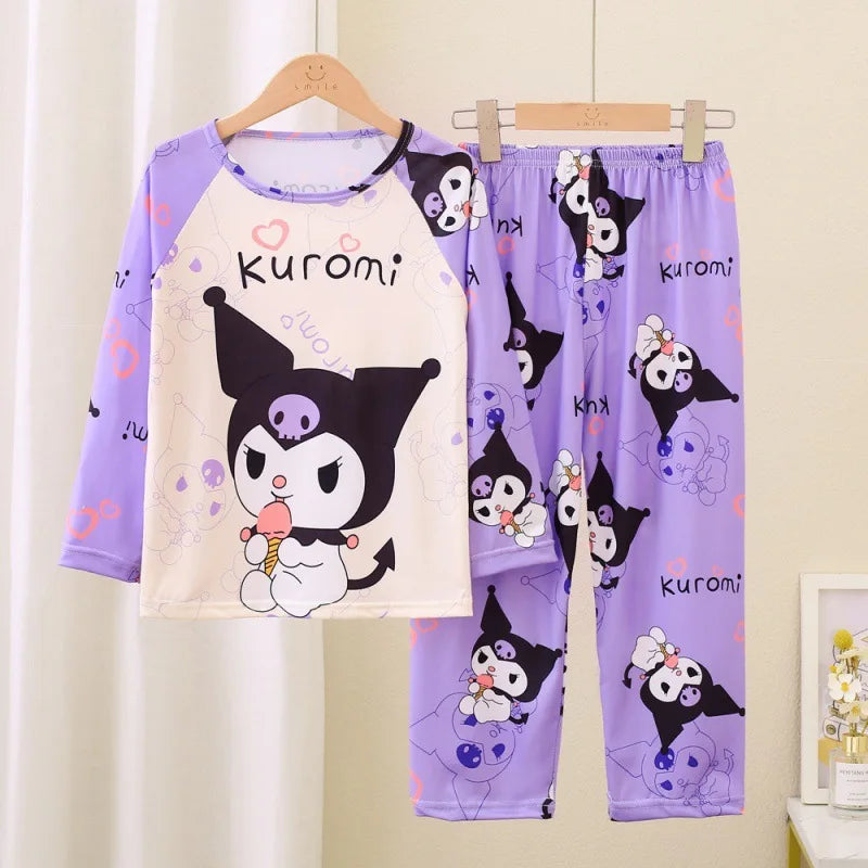 🌙 Perfeito para as noites de outono e inverno, esse conjunto de manga longa com calça é confeccionado em material leve e elástico, com estampa digital vibrante que não desbota com facilidade. Ideal para meninos e meninas que amam o universo kawaii da Sanrio.