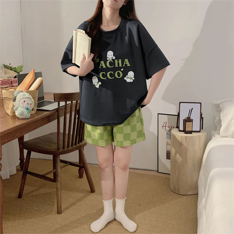 🌱 Confeccionado com algodão e poliéster de toque suave, é ideal para os dias mais quentes da primavera e do verão. O look perfeito pra relaxar em casa, maratonar animes ou até curtir um dia preguiçoso com muito estilo.