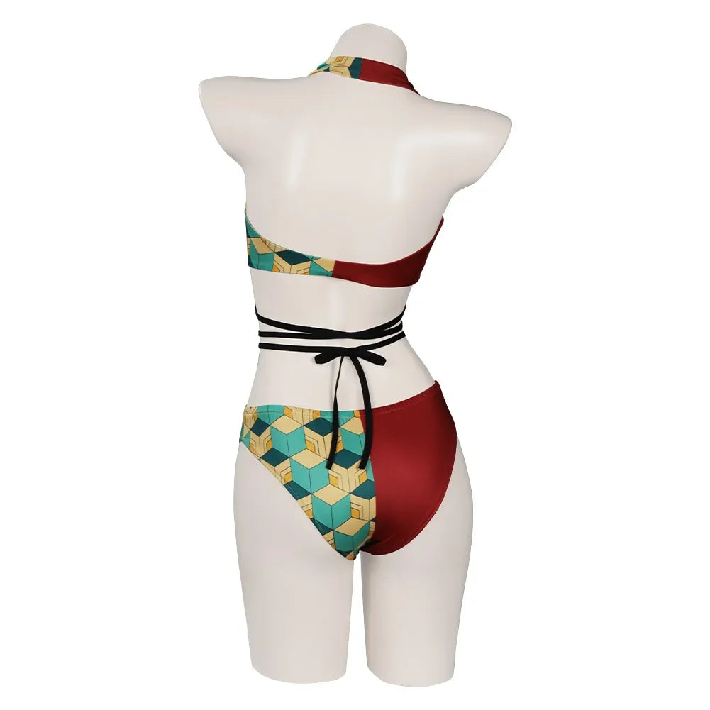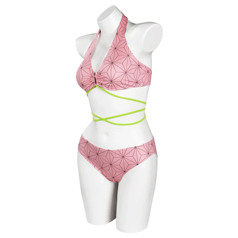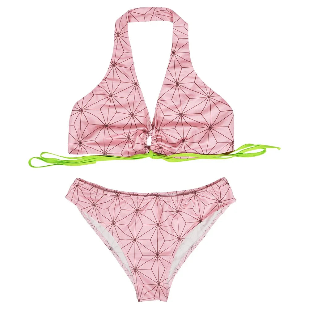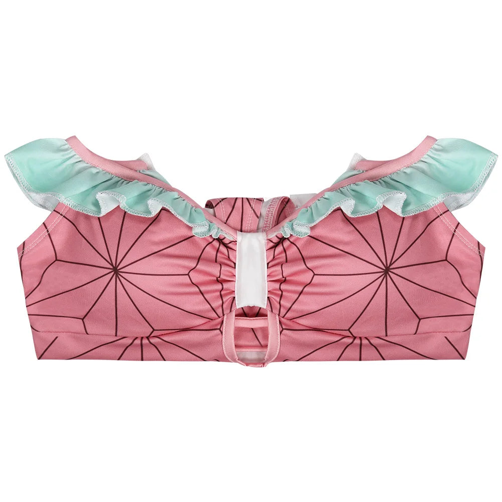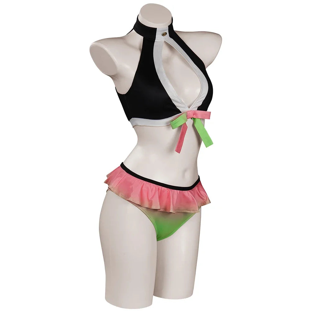 Descrição do Produto: Traje de Banho Biquíni Cosplay Demon Slayer 🌸🩱