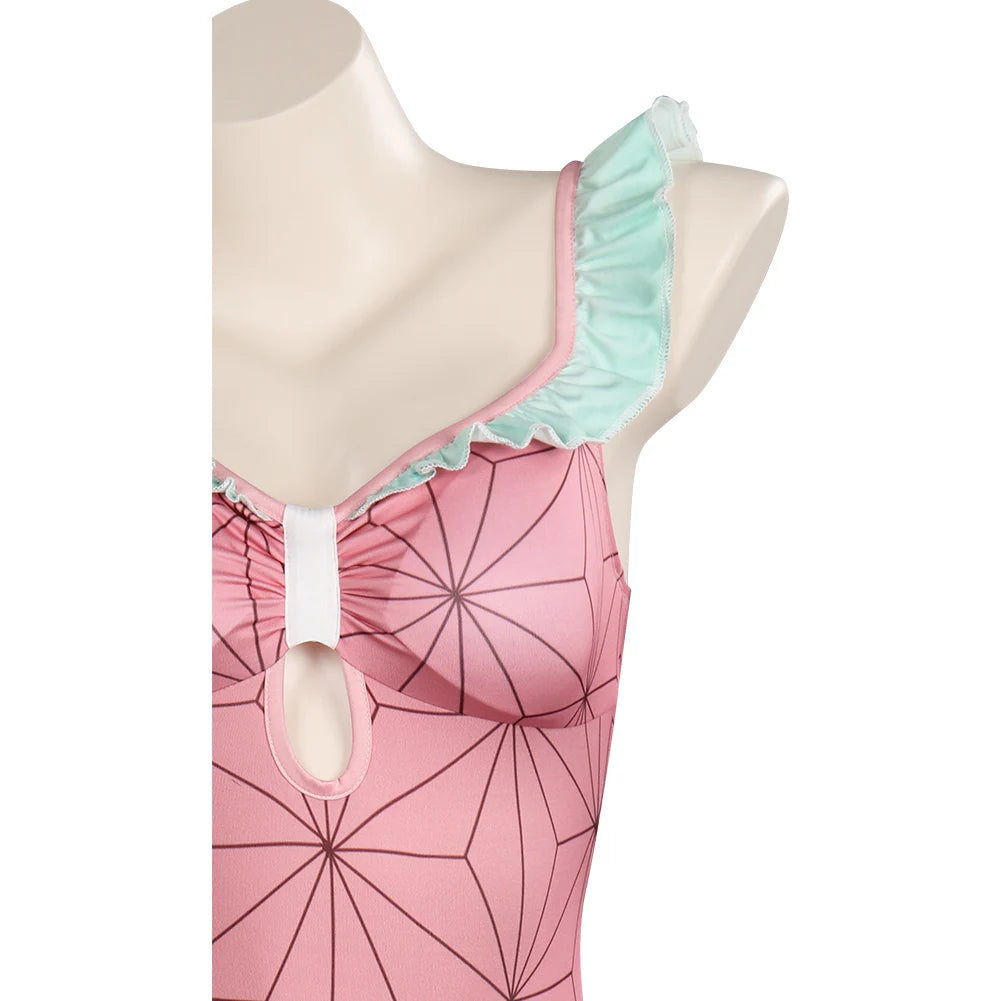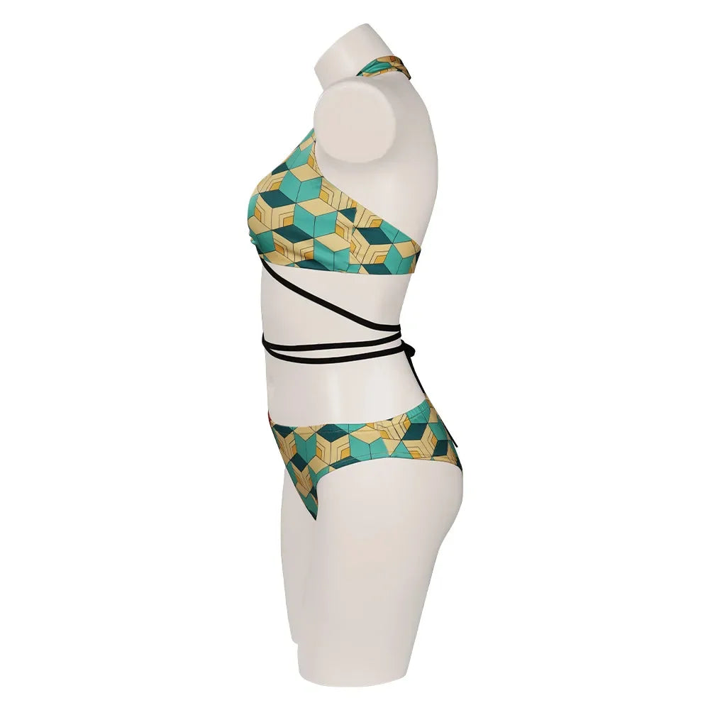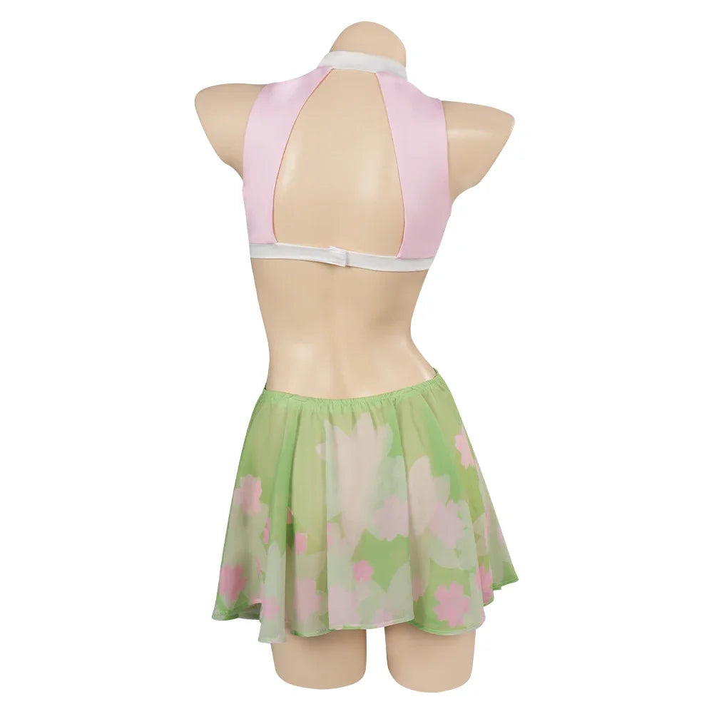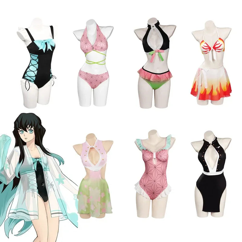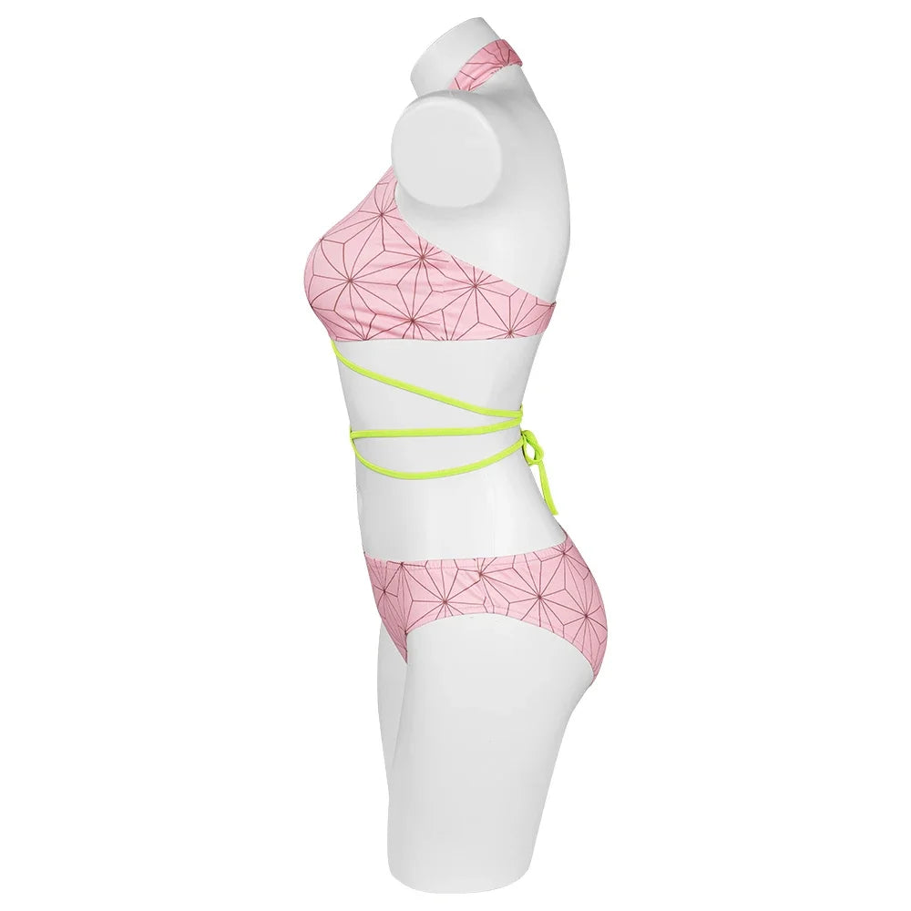 Descrição do Produto: Traje de Banho Biquíni Cosplay Demon Slayer 🌸🩱
