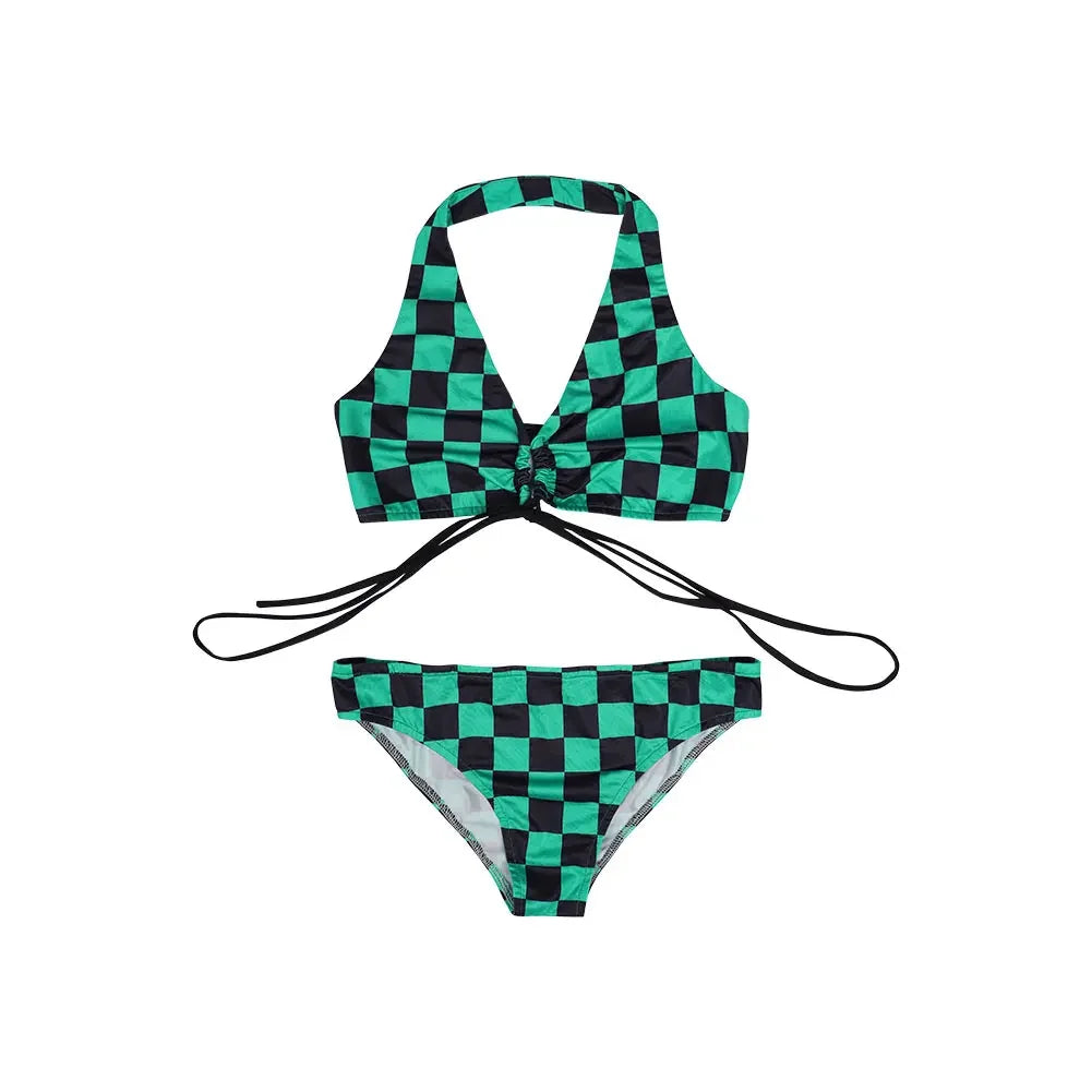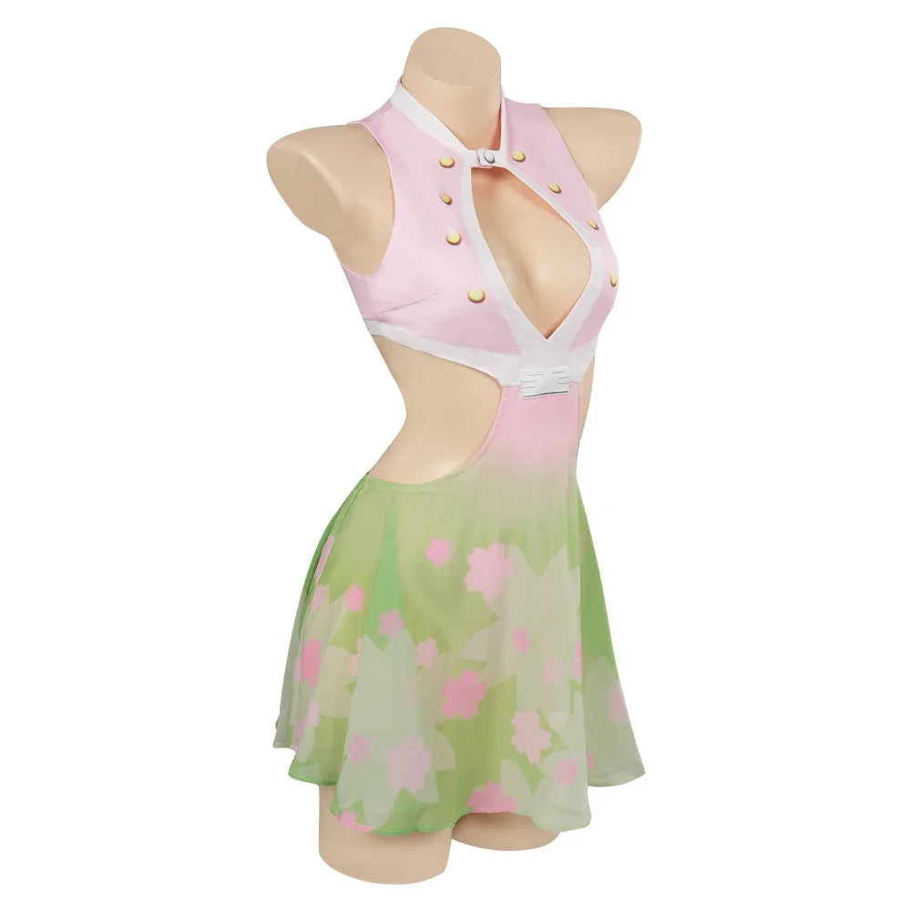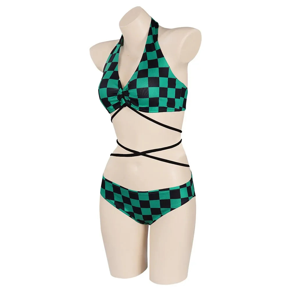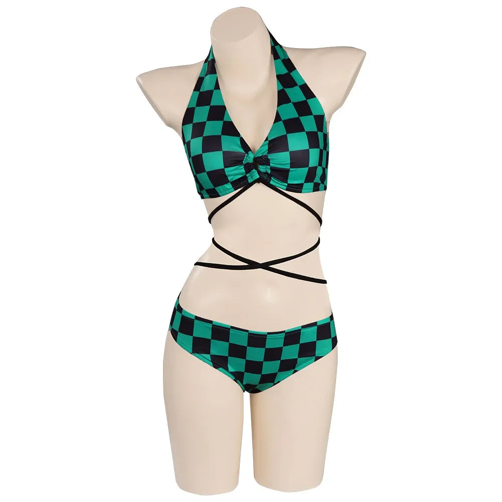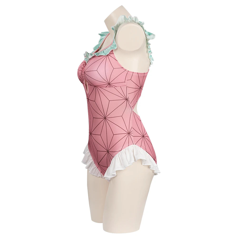 Descrição do Produto: Traje de Banho Biquíni Cosplay Demon Slayer 🌸🩱